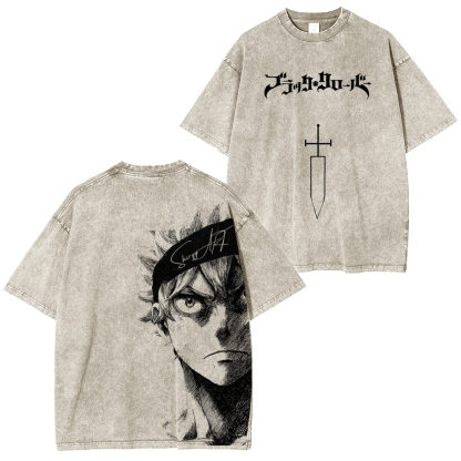 Black Clover Anime Double Printed Vintage Washed Tee Unisex