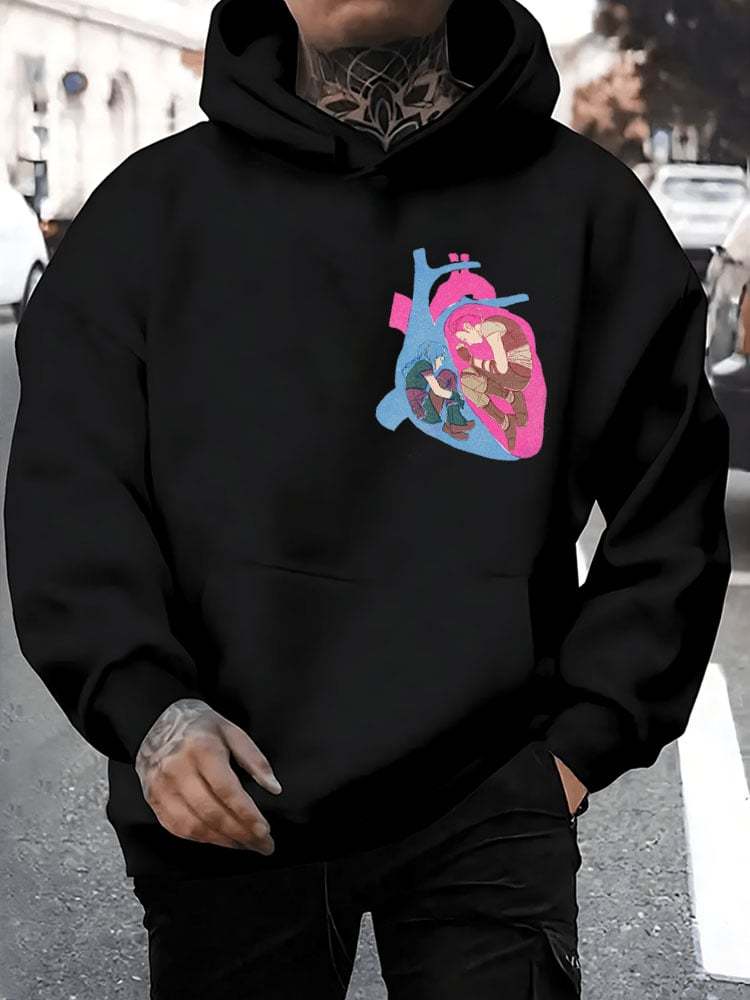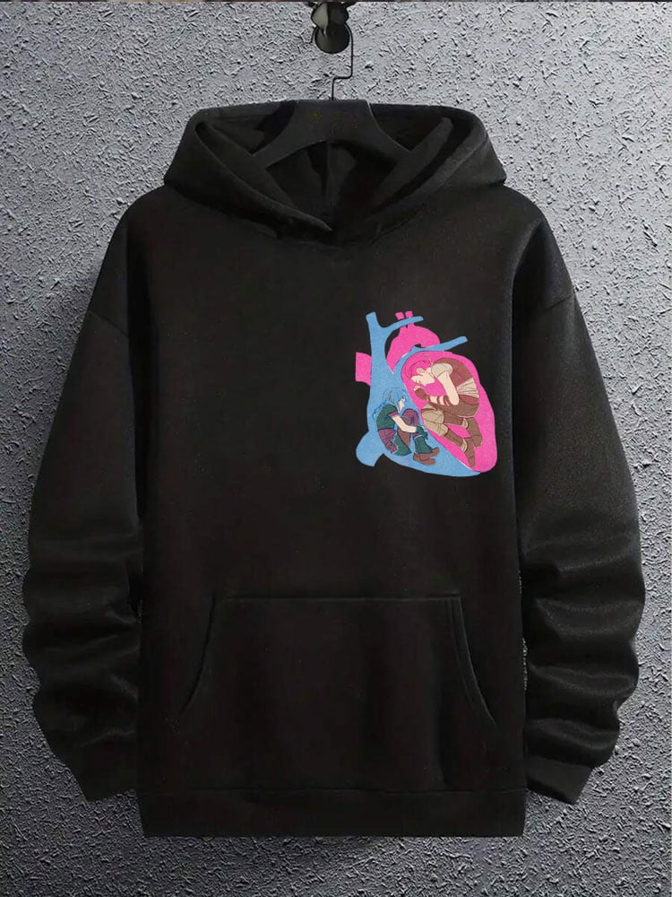 (Plus Velvet)Men's Anime Printed Hooded Sweatshirt