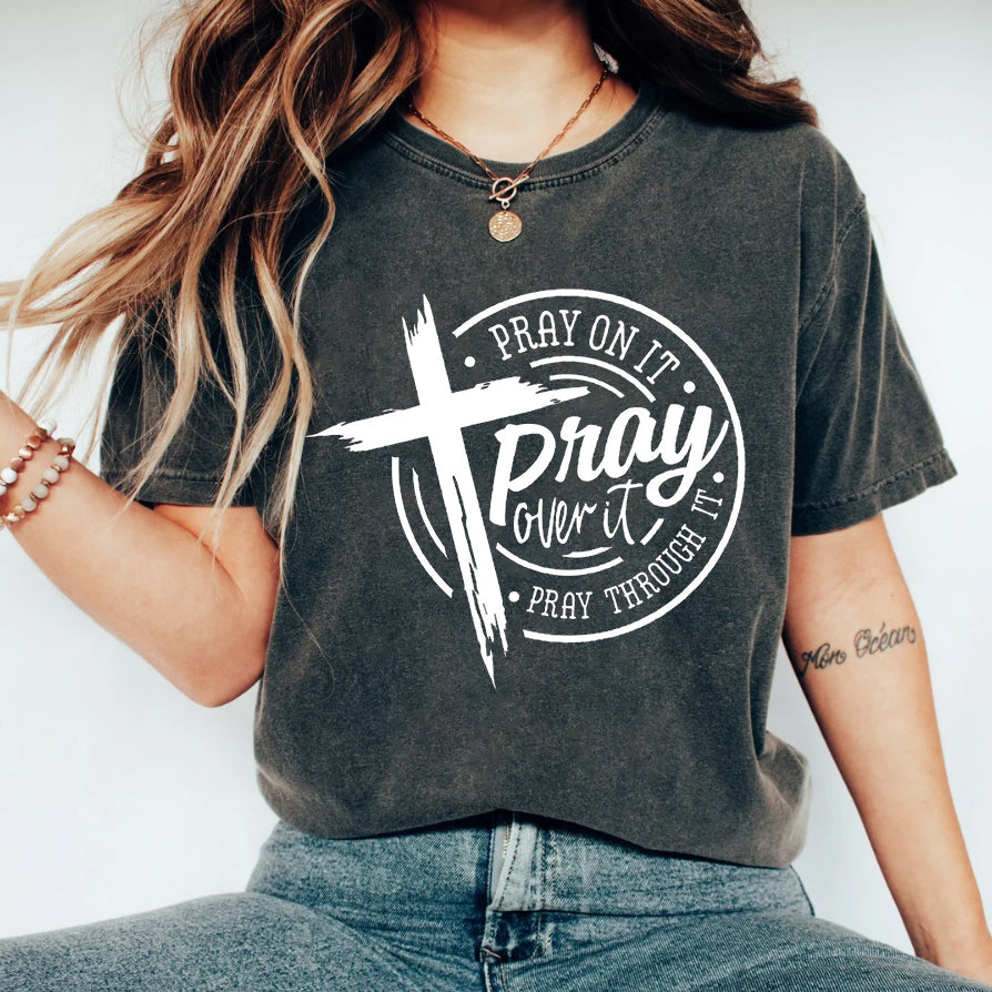 Pray on it Pray over it Pray through it T-shirt